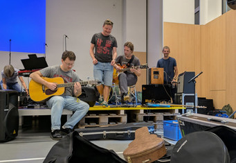 Freitag, 19. September 2025. Um 16 Uhr können wir die Mehrzweckhalle übernehmen. Wir bauen die Bühne für den Chor und die Band auf. Der Toningenieur stellt überall Mikrofone auf. Die KollegInnen, die in Szenen spielen, bekommen Headsets. Die Band trifft sich zum ersten Mal in dieser Formation. Um 20 Uhr findet die Generalprobe statt. Ein Durchlauf, dann wissen wir, wo wir stehen.